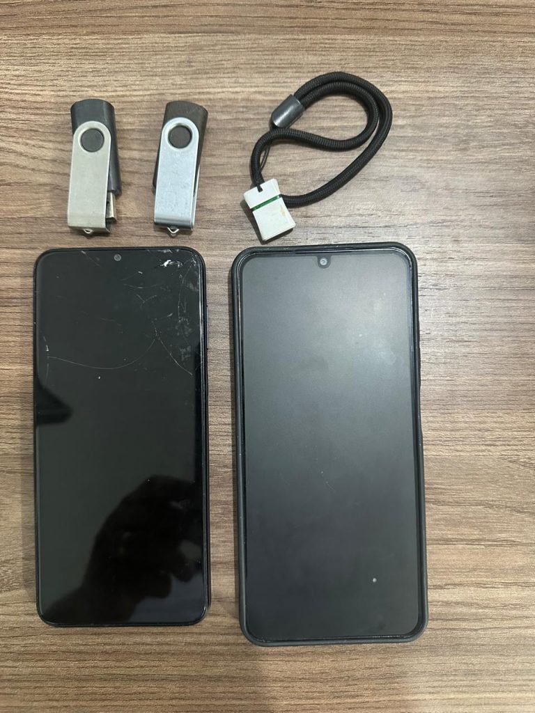 Durante o cumprimento dos mandados, os policiais apreenderam dois celulares e um pen drive.